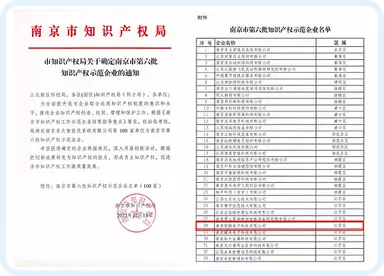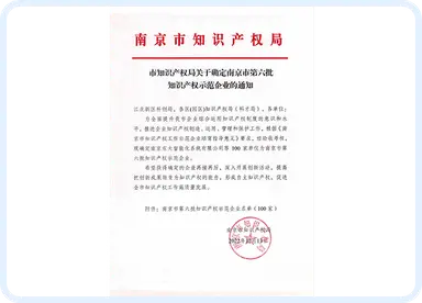 入选南京市知识产权局“南京市知识产权示范企业”