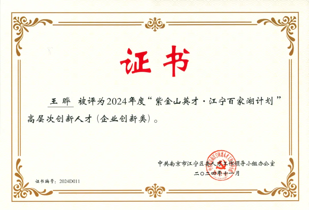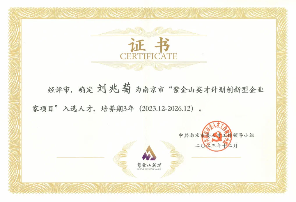智鹤科技董事长刘兆萄入选“南京市紫金山英才计划创新型企业家项目”